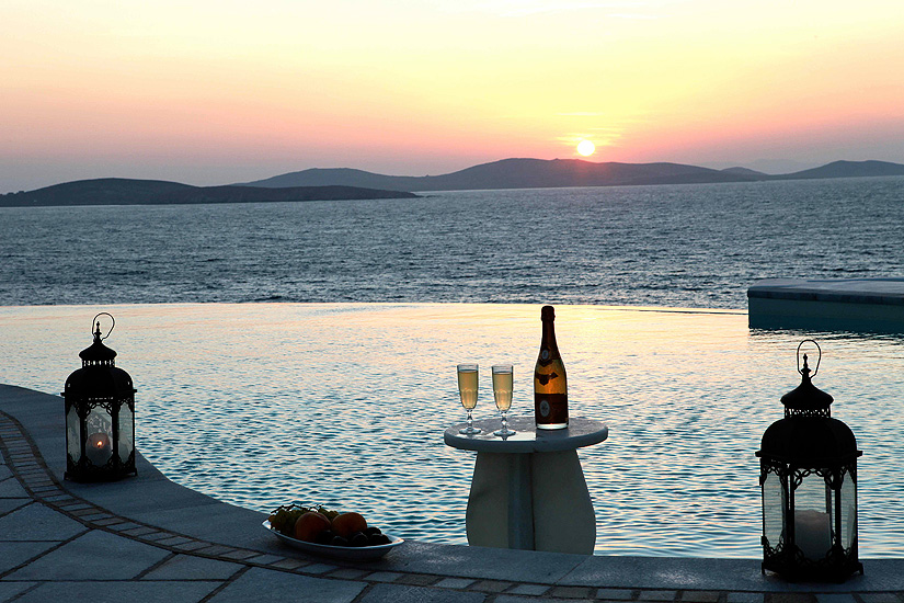 Villa Sunset è un gioiello di rara ed eccezionale bellezza sull'isola di Mykonos. Si trova a Aleomandra di fronte Delos ed i suoi tramonti incantevoli e a 1,5 km dalla spiaggia di Ornos. La casa è circondata da un ampio terrazzo, piscina privata vista mare, diverse terrazze e aree relax abbracciano la proprietà. Il soggiorno è arredato con eleganti e moderni mobili bianchi. La casa principale con quella degli ospiti si compongono di un totale di 8 camere ed ospitano fino a 16 persone. La perfetta combinazione di stile, vista mozzafiato e spiaggia privata a pochi metri offre agli ospiti una delle esperienze più uniche dell'isola.